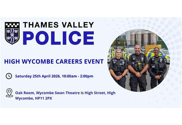 Discover your future with Thames Valley Police at our upcoming Careers Event taking place at the Wycombe Swan Theatre, High Wycombe.
